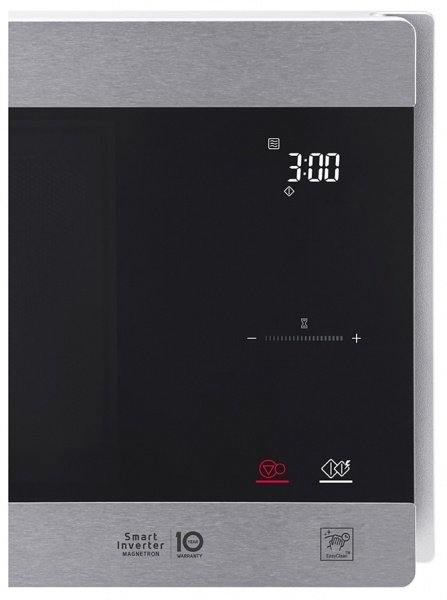 Мікрохвильова піч LG NeoChef c технологією Smart Inverter. Завдяки високій потужності в 1000 Вт і точності керування продукти розморожуються, підігріваються і готуються більш еффектівно³, а страви порадують вас різноманітністю. Компанія LG надає 10 років гарантії на частини магнетрона.
