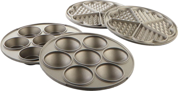Прилад комплектується набором форм для приготування вафель та капкейків. Всі форми виготовлені з міцного алюмінієвого сплаву та вкриті спеціальним покриттям, що запобігає пригорянню. Форми стійкі до подряпин, а також їх легко мити.