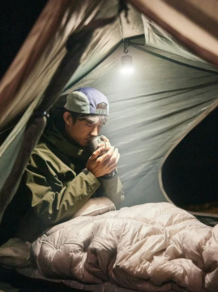 - Нічник. Інтерфейс представлений 3 режимами роботи яскравістю 300, 160 та 60 люмен з часом роботи 4.5 год, 6 год та 14 год відповідно. Завдяки складаній ручці конструкцію можна підвішувати на гачок у наметі для освітлення на 360°.