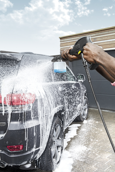Завдяки компактним розмірам мийка високого тиску K 4 Classic Car поміститься і в багажнику автомобіля, і в стінній шафі. Вона дуже зручна у транспортуванні та має при цьому високі параметри продуктивності. Завдяки комплекту для миття автомобілів, що включає насадку для пінного чищення, обертову мийну щітку та автомобільний шампунь, мінімийка K 4 Classic Car прекрасно підходить для періодичного очищення помірно забруднених транспортних засобів. Алюмінієва телескопічна ручка регулюється по висоті для зручного переміщення апарату на колесах. Апарат укомплектований також пістолетом із роз'ємом Quick Connect, 6-метровим шлангом високого тиску, струменевою трубкою Vario Power, фрезою для стійкого бруду та фільтром для води. Модель K 4 Classic Car з продуктивністю за площею 30 м²/год є ідеальним рішенням для регулярного усунення забруднень середнього ступеня (наприклад, для очищення садових огорож, миття велосипедів або невеликих автомобілів).
