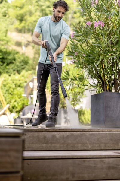 K 4 WCM Premium вражає потужним двигуном із водяним охолодженням, який вирізняється довгим терміном служби. Мийка високого тиску з 6-метровим шлангом високого тиску призначена для періодичного використання і помірного забруднення. Завдяки струменевій трубці Vario Power (VPS) і брудоструменевому апарату тераси, садові меблі та транспортні засоби можуть очищатися в міру необхідності. Тиск води можна точно відрегулювати для конкретного об'єкта, що очищається, просто повернувши VPS. Крім того, брудоуловлювач із форсункою, що обертається, забезпечує успішне очищення без будь-яких компромісів навіть за стійкого бруду. Завдяки вбудованій котушці для шланга зберігання шланга високого тиску спрощується, а всі інші аксесуари також можна зберігати безпосередньо на пристрої. Вбудований водяний фільтр надійно захищає насос від частинок бруду.