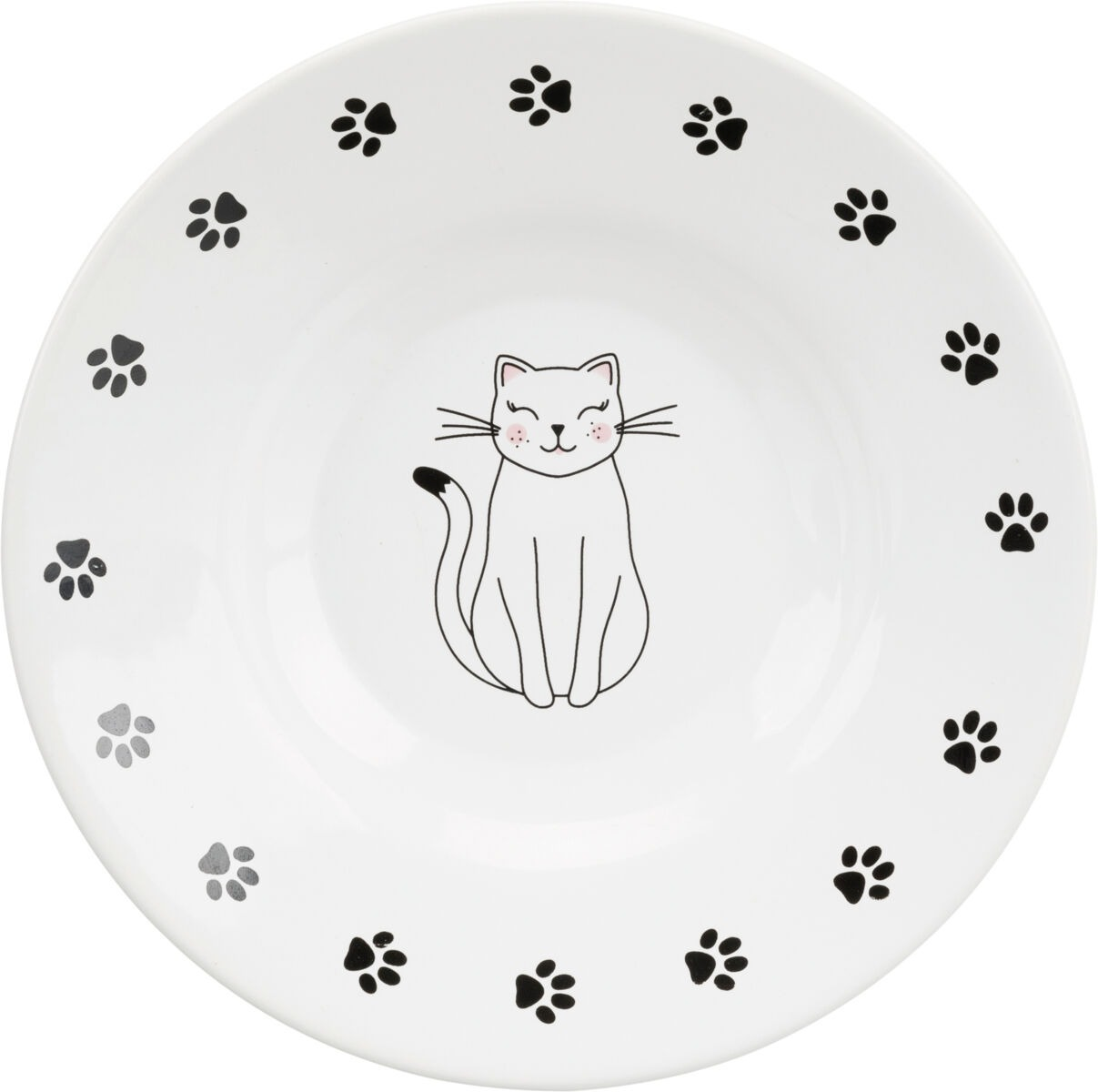 - Миска для котів Trixie керамічна пласка з принтом 15 см 0.2 л біла