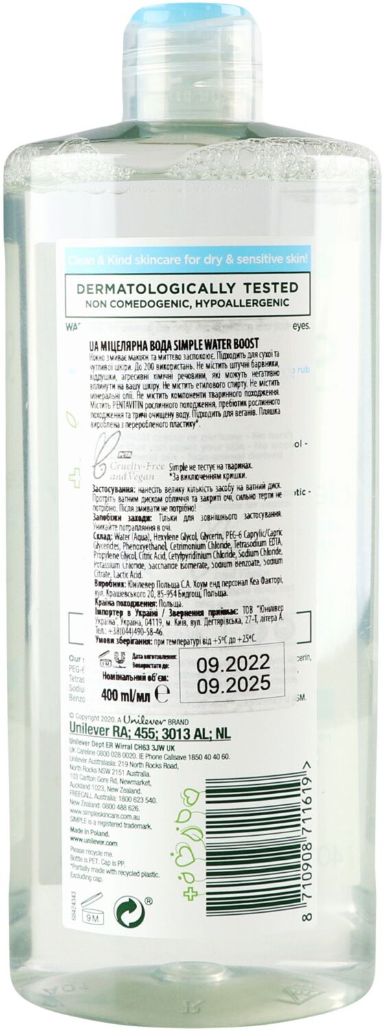 Схожі товари Міцелярна вода Simple Micellar Cleansing Water Pentavitin&Prebiotic 400мл