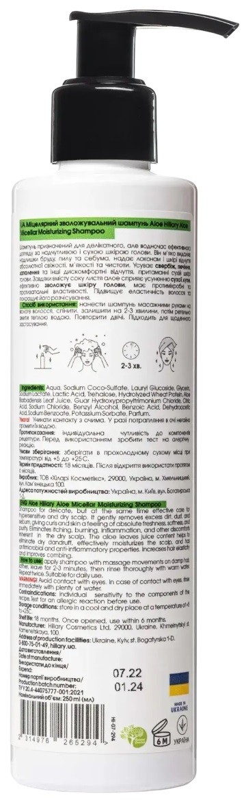 Міцелярний шампунь Hillary Aloe Micellar Moisturizing Shampoo зволожувальний 250 мл