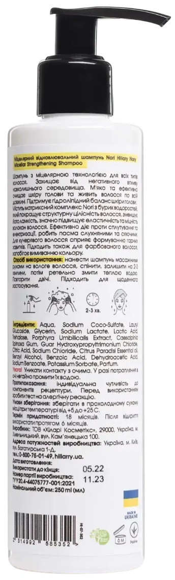 Міцелярний шампунь Hillary Norі Micellar Strengthening Shampoo відновлювальний 250 мл