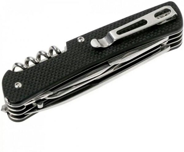 | Особливості конструкції | Інструмент для закручування дроту, Інструмент для огоління дроту, Кліпса, Ключ, Ножиці, Викрутка пряма, Відкривачка, Скальпель, Склобій, Стропоріз, Шило, Штопор |