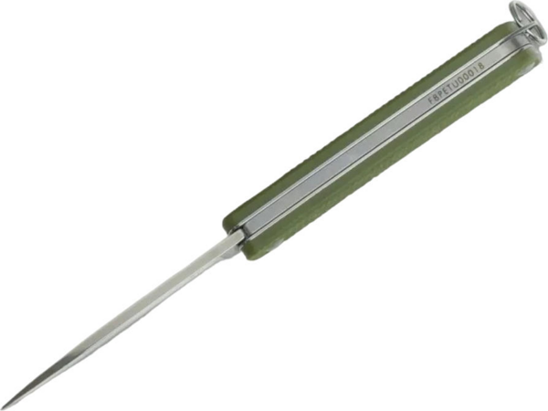 У розкладеному вигляді довжина ножа досягає 12,2 см, з яких 5,3 см займає клинок. Лезо виконано у формі Drop-point із нержавіючої сталі Sandvik 12C27, що має твердість 58–59 HRC. Якісна плейнова заточка та добре виведені спуски від обуха дозволяють легко справлятися з різними матеріалами під час різання. Конструкція ножа передбачає використання замка Slip-joint, який не тільки фіксує лезо у відкритому або закритому положенні, але й виконує роль бекспейсера, додаючи жорсткості всій конструкції.
