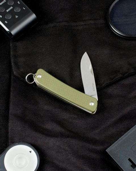 Якщо ви шукаєте компактний складаний ніж, який легко носити з собою в повсякденному житті — зверніть увагу на Ruike S11. Цей ніж ідеально підходить для носіння в кишені або у вигляді брелока на ключах, завдяки своїм скромним розмірам та малій вазі. У складеному стані його довжина становить лише 7,1 см, а вага — всього 30 грамів. Ніж практично не відчувається при щоденному носінні, що робить його зручним супутником у міських умовах.