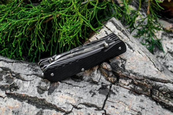 | Особливості конструкції | Інструмент для закручування дроту, Інструмент для огоління дроту, Кліпса, Ключ, Кусачки, Ножиці, Викрутки, Викрутка пряма, Відкривачка, Плоскогубці, Скальпель, Склобій, Стропоріз, Шило, Штопор |