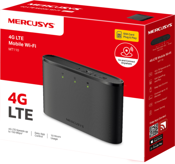 Опис Мобільний маршрутизатор MERCUSYS MT110 N150, 4G/LTE, 2200мА*год (MT110)