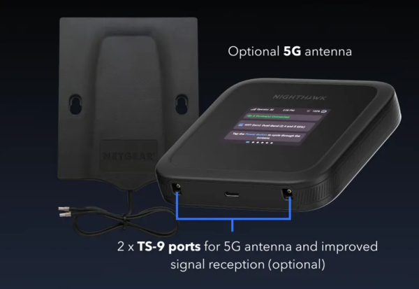 Поліпшіть прийом 5G/4G у будівлях, транспортних засобах або віддалених районах з обмеженим покриттям мережі, під'єднавши зовнішню антену до двох портів TS-9 (опціонально).