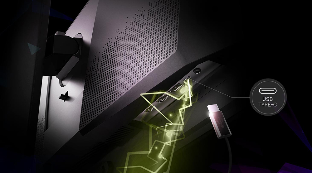 Інтерфейс USB Type-C слугує для під'єднання до джерел відеосигналу (в альтернативному режимі DisplayPort) і підзаряджання гаджетів.