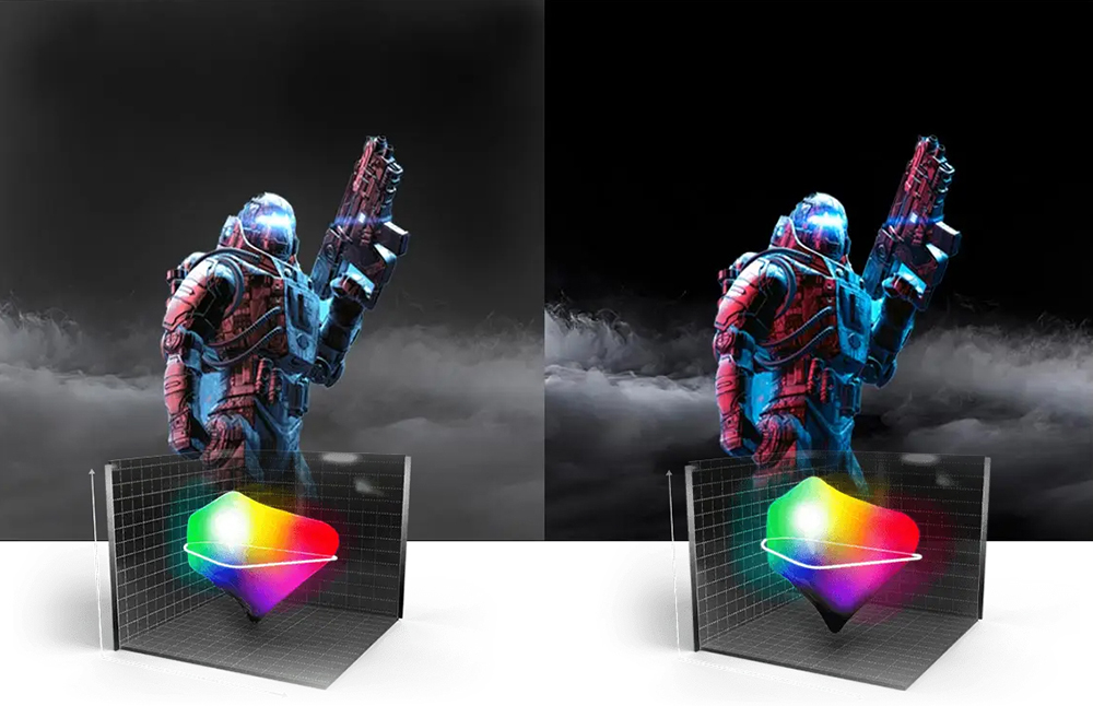 Екрани QD-OLED вигідно відрізняються від традиційних РК-дисплеїв більш точним керуванням джерелом світла - на рівні окремих пікселів, що дає змогу виводити темні відтінки без засвічень, типових для РК-моніторів. Результат - реалістичні кольори та висока контрастність, яка у моделі MAG 271QPX QD-OLED E2 сертифікована за стандартом VESA DisplayHDR True Black 400. Завдяки затемненню на рівні пікселів MAG 271QPX QD-OLED E2 може забезпечити кращу контрастність кольорового зображення.