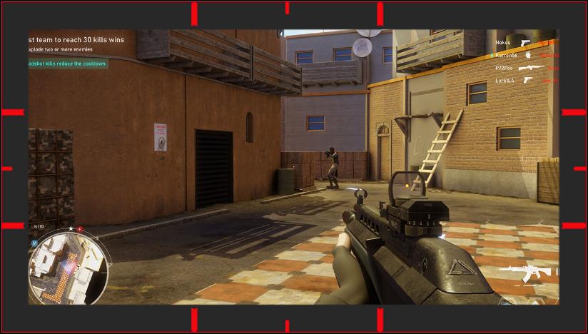 Функція автоматично змінює колір перехрестя прицілу на контрастний по відношенню до фону, щоб воно завжди було чітко видно і прицілювання було точним.