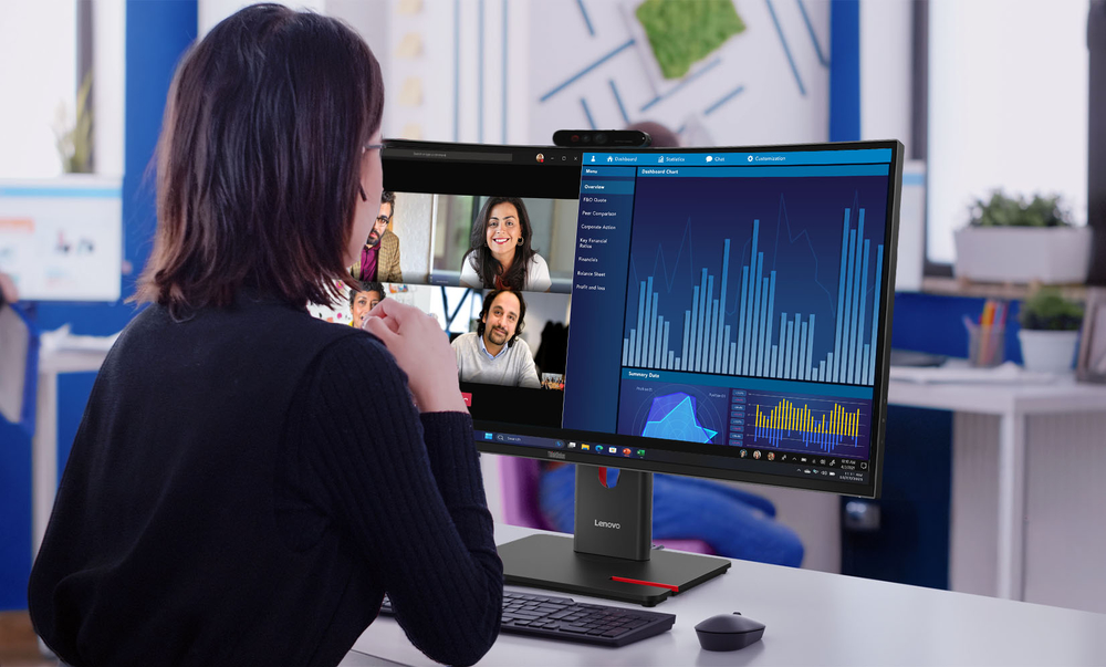 Док-монітори ThinkVision передбачають рішення з одним кабелем USB-C, яке забезпечує одночасно живлення (до 100 Вт), передавання даних і мережеве підключення, що робить ці монітори зручними для вашого цифрового робочого простору.