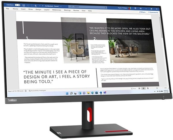 ThinkVision S27i для використання вдома або в офісі. Плоский монітор чорного кольору на витонченій підставці буде доречний в абсолютно будь-якому будинку або офісі. Ергономічна структура ніжки дає змогу відрегулювати висоту та кут нахилу екрана таким чином, як тобі зручно. Завдяки спеціальному покриттю зменшується навантаження на очі та перешкоджає появі відблисків, у тому числі, навіть якщо пристрій знаходиться біля вікна.
