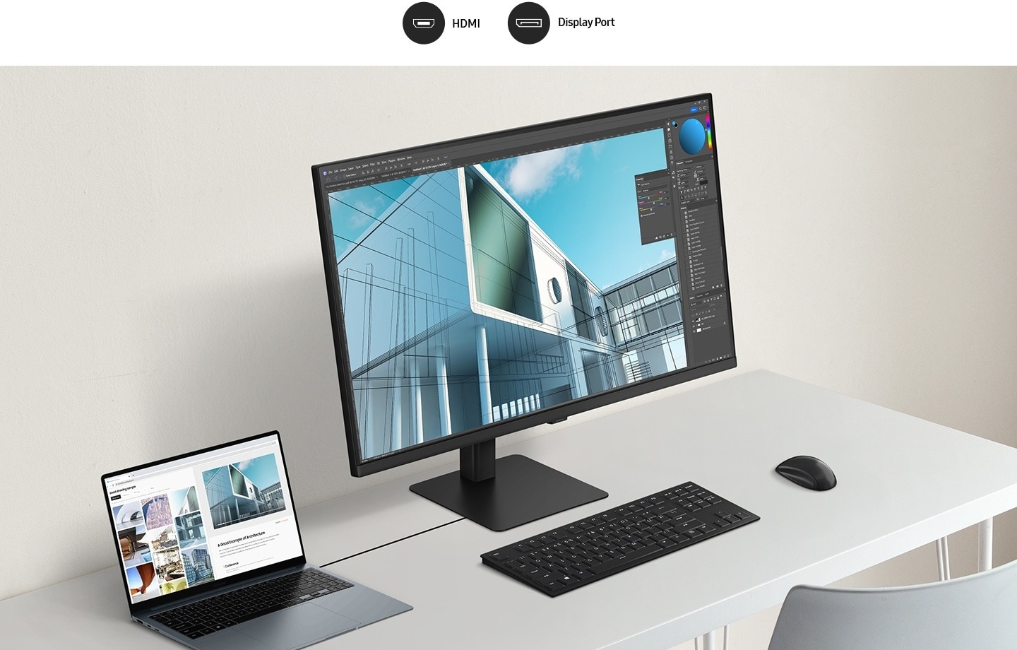 Максимально просте під'єднання пристроїв завдяки портам HDMI та DP. Ця дивовижна практичність не лише спрощує налаштування, а й підвищує продуктивність, забезпечуючи плавний робочий процес.