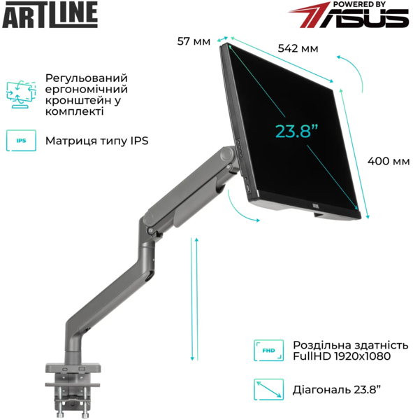Завдяки ергономічному кронштейну, ви зможете налаштувати ідеальний кут огляду екрана для більш комфортної роботи. Також можливість кріплення на стіну допомагає звільнити простір на робочому столі, зробивши ваше робоче місце більш організованим.