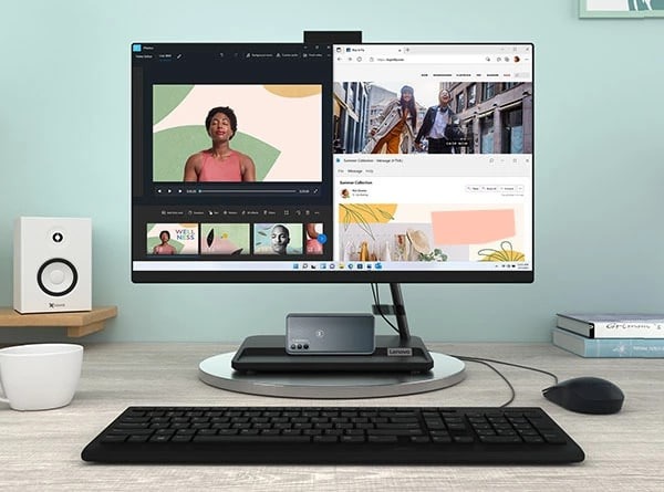 Широкий набір портів надає доступ до швидшої передачі даних, а також виведення відео та аудіо. Кабель Smart Cable з’єднує твій ноутбук із моноблоком AIO 3i Gen 7, тож ти можеш безперебійно працювати, керуючи двома ПК і спільним сховищем даних за допомогою лише одного набору миші та клавіатури.