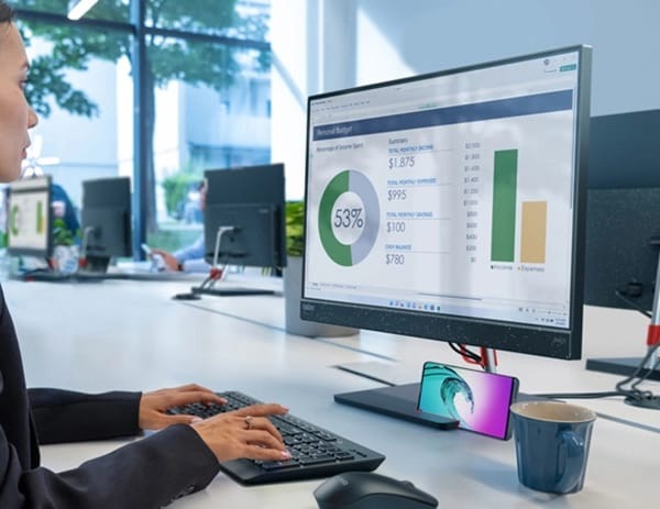 Оскільки гібридна робота стала новою нормою, тісна співпраця є дуже важливою. І ThinkCentre Neo 50a має все необхідне для цього. Крім інтелектуальної технології шумозаглушення, він має технологію Lenovo Smart Appearance для розмиття фону та додавання інших ефектів під час конференц-зв’язку. А за допомогою AI Meeting Manager ти зможеш оцінити переклад у режимі реального часу, редактор нотаток до зустрічі, голосову взаємодію з Alexa тощо.