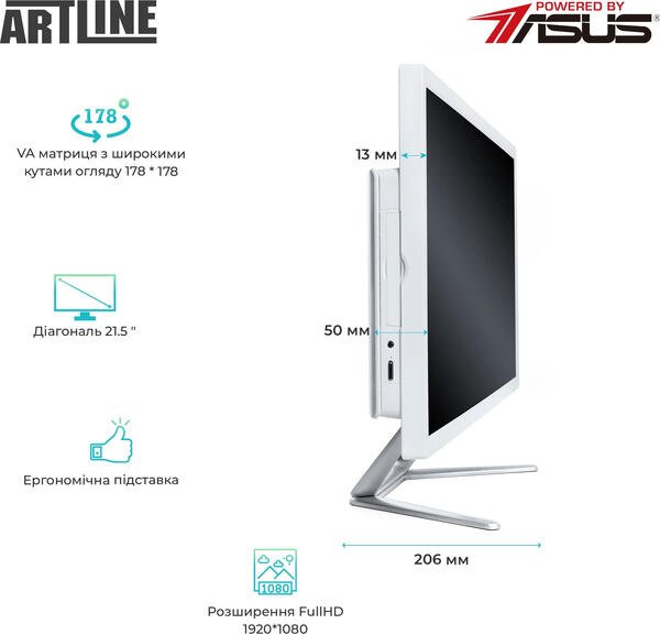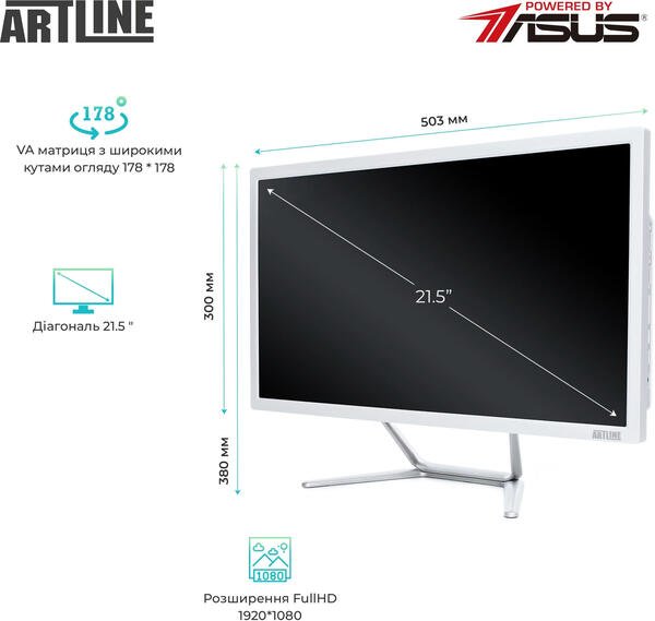- Широкоформатна матриця з великими кутами огляду діагоналлю 21.5" дюйма і FullHD роздільною здатністю.