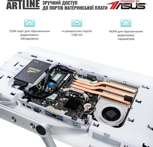 - Вивірене компонування і грамотний кабель-менеджмент забезпечить всередині моноблока якісне повітряне охолодження навіть в режимах підвищеного навантаження.