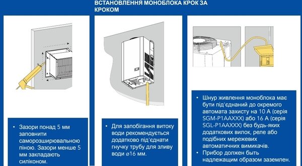 - Він вимагає менше часу на установку, оскільки є єдиним блоком і не вимагає інсталяції ліній холодоагенту або води.