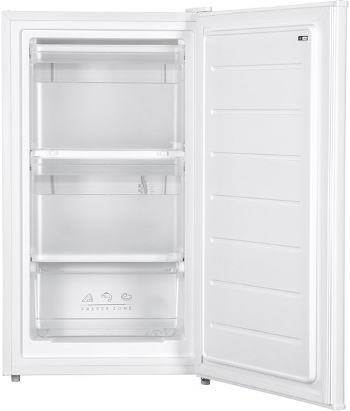 Компактна вертикальна морозильна камера білого кольору для домогосподарств та невеликих магазинів. Енергозбереження відповідає класу А+, для зберігання продуктів передбачено три відділення, а загальний об’єм – 60 л. Час автономного збереження холоду в морозильній камері – 9 год.