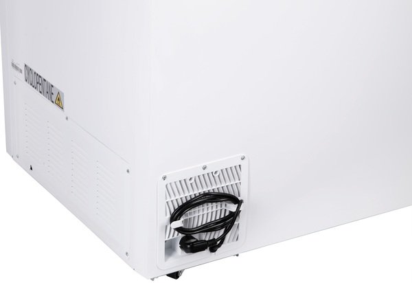 Морозильна камера білого кольору з механічним керуванням, функцією швидкого заморожування і продуктивністю 17 кг/24 години. Енергозбереження відповідає класу А+, а корисний об'єм становить 362 л. Час автономного живлення без споживання енергії - 50 годин.