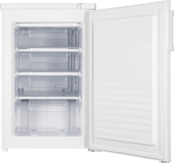 Корисний об’єм морозильної камери становить 85 л. Конструкцією передбачено 4 полиці з висувними ящиками. Це забезпечує дотримання правила товарного сусідства, унеможливлюючи змішування запахів і гарантуючи тривале зберігання. Завдяки потужності камери 90 Вт продуктивність заморожування становить 4 кг продуктів протягом 24 год. У разі перепадів з електроенергією або її відсутності камера збереже холод протягом 17 год. Клас енергоефективності на рівні А+, що свідчить про економне споживання пристроєм електроенергії. Кліматичний клас (параметр, який вказує на допустиму температуру зовнішнього середовища, коли камера працюватиме без збоїв) – ST/N. Морозильна камера працює тихо і не спричинить незручностей, адже шум на рівні неквапливої бесіди – 41 дБА.