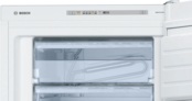 Bosch Serie 4 GSV24VWE0N – це простора та високоякісна морозильна камера, ідеальна для тривалого зберігання запасів. Її загальний об'єм у 182 літри дає змогу легко розмістити значний обсяг продуктів. Зручна організація внутрішнього простору досягається завдяки шести зонам зберігання: п'яти висувним шухлядам та одній верхній полиці з відкидною кришкою.