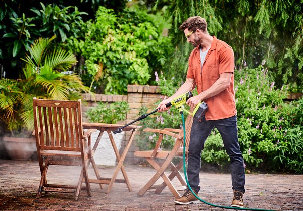 НОВИЙ 18В акумуляторний мийний пістолет в 4 рази потужніша звичайного садового шланга, що робить його ідеальним рішенням для миття автомобіля, велосипеда, тераси або інших поверхонь. Просто підключіть акумулятор ONE +, надішліть листа з шланг і готово!