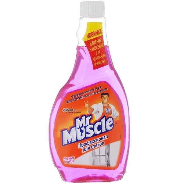 - Засіб для миття скла Mr. Muscle" Лісові ягоди" з Ammonia-D чудово очищає поверхню, надає їй блиску, не залишає розлучень і має приємний запах.