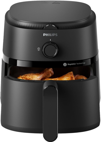 Компактна конструкція ідеально підходить для будь-якої кухні – як великої, так і малої. У 4,2-літрову піч поміщається до 500 грамів картоплі фрі, 6 курячих гомілок або 500 грамів овочів.