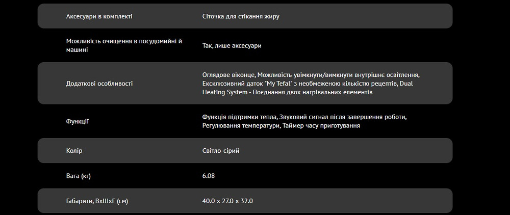 | Функції та можливості | Автовідключення, Автоприготування, Регулювання температури, Сигнал готовності, Система приготування без застосування масла, Таймер |