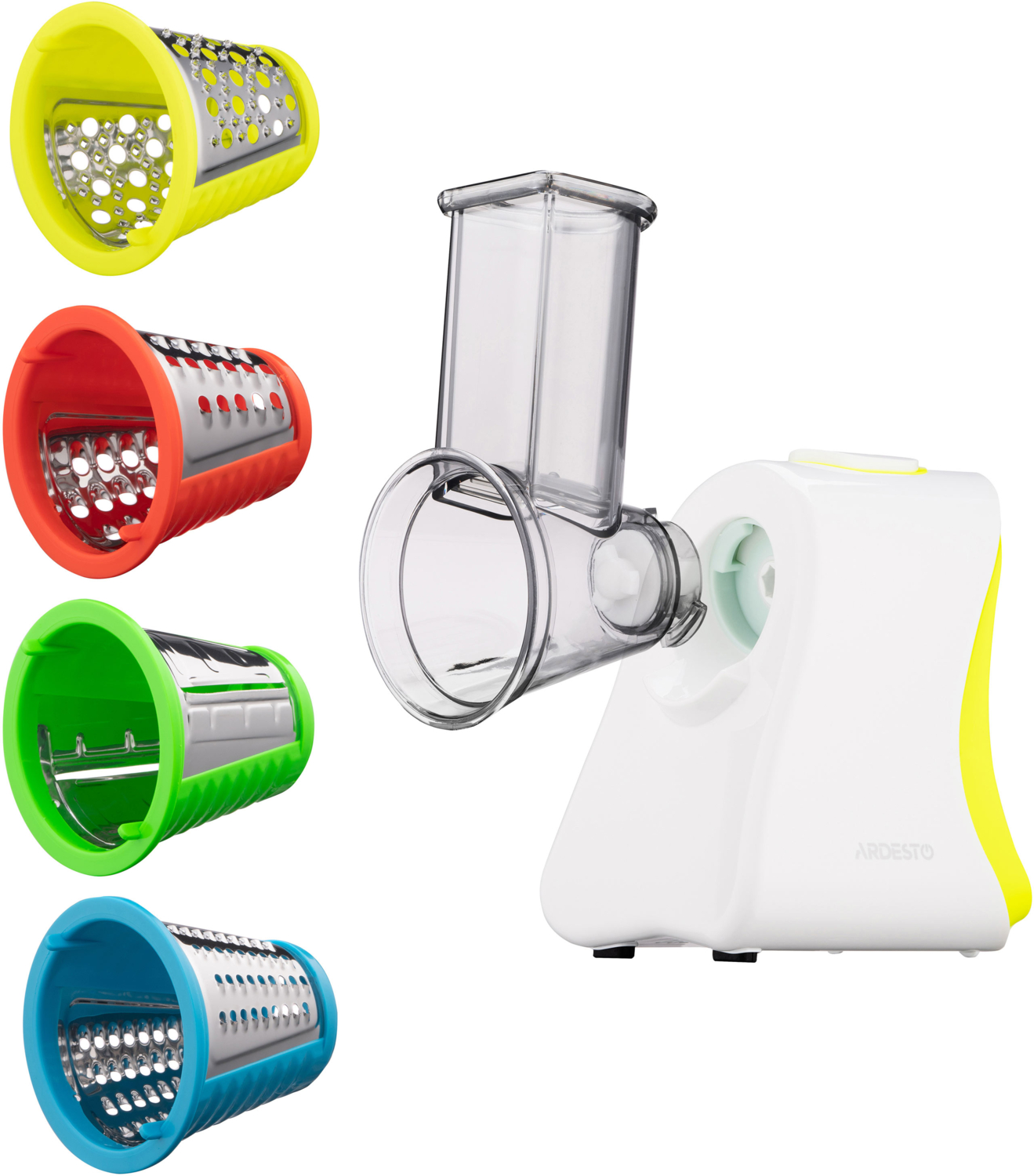 Прикольная машинка для нарезкит овощей, сыров и колбас. Насадки в комплекете острые, поэтому легко справляются с сырыми морковью и бурячком. Про отварные и мягкие продукты даже упоминать не стоит. С этой мультирезкой накрыть стол стало проще