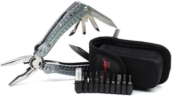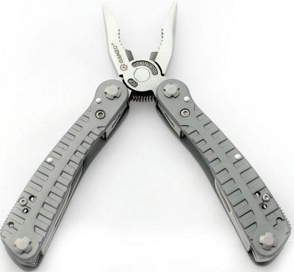 Зручний повнорозмірний мультитул G105 від компанії Ganzo. Великий набір інструментів дозволяє використовувати модель G105 для повноцінного ремонту різноманітної техніки. В комплект мультитула G105 входять наступні інструменти: підпружинені плоскогубці з кусачками, два леза, одне з яких має серрейторную заточку, дві плоских викрутки різного розміру, напилок, лінійку, подовжувач для адаптера, консервний ніж.