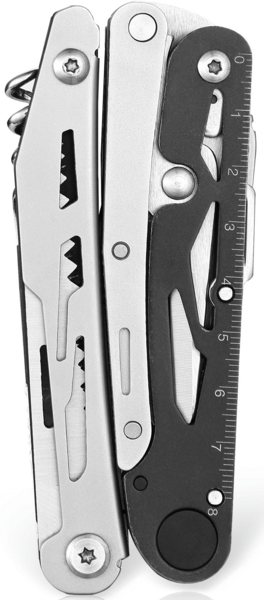 У руківʼях сховані такі інструменти: клинок з прямим лезом, пила з серейторним заточуванням, хрестоподібна викрутка, штопор. Ножиці також є частиною мультитула. Вони від'єднуються від основної конструкції для зручної експлуатації. З однієї зі сторін руківʼя ножиць нанесено сантиметрову лінійку.