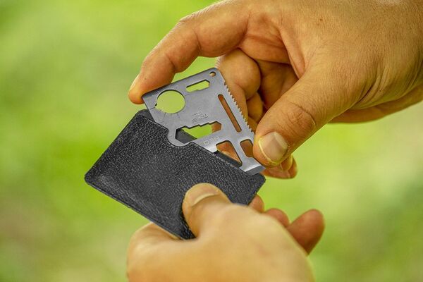 Карта виживання 11 в 1, 63-134, NEO TOOLS Карта виживання – незамінний гаджет, який може поміститися у ваш гаманець і може виявитися незамінним у надзвичайних ситуаціях у польових умовах. Він містить до 11 функцій, у тому числі: консервний ніж, гайковий ключ-метелик, дворядна пилка, кільцевий ключ на 4 і 5 мм, покажчик картки, кільцевий ключ на 6, 7, 8, 10 мм, вимірювальна стрічка на 4 см, відкривачка для пляшок, плоска викрутка, ніж. Захист від випадкових розривів чи порізів забезпечить шкіряний чохол, а нержавіюча сталь забезпечить довговічність навіть у складних погодних умовах.