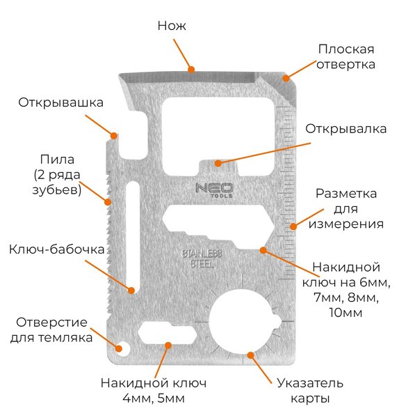 - Мультитул NEO картка виживання 10 в 1 (63-134)