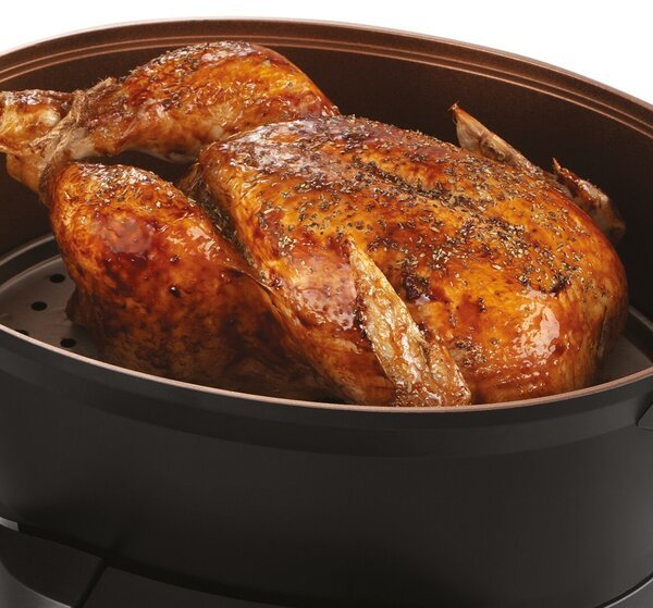 Она экономная, есть пароварка и решетка для жарки, качество покрытия и конструкция с отсоединяемой электроникой на высоте. Ручки не нагреваются, крышка стеклянная с выступом для вертикального хранения, отверстие для пара подходит для кулинарного термометра.