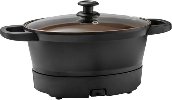 Міцний, міцний литий алюмінієвий корпус мультиварки витримує будь-які навантаження, такі як каструля на стільниці, каструля на столі та миття в посудомийній машині.