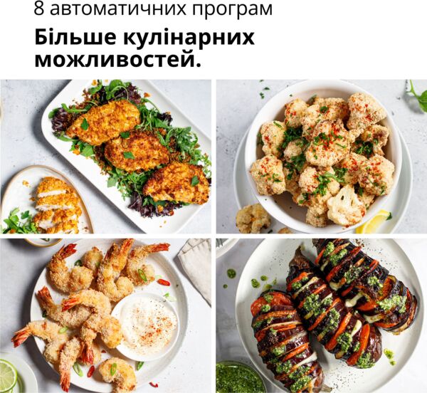 8 автоматичних програм приготування позбавляють вас від необхідності гадати та розширюють різноманітність ваших страв.