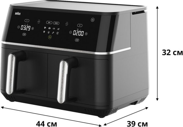 Дві надзвичайно місткі висувні кошики об'ємом 5 л дозволяють готувати для всієї родини: приготуйте цілу курку вагою 1,4 кг разом із 1,2 кг картоплі фрі одночасно.