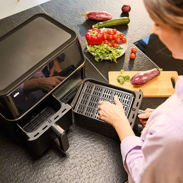Готувати улюблені страви для всієї родини стало ще швидше та простіше. Два надзвичайно містких відсіки у Braun TwinCook 5 дозволяють легко приготувати повноцінний обід. Запікайте цілу курку разом із овочами, і вони будуть готові одночасно. Функція Match дозволяє дублювати налаштування в обох висувних ящиках, щоб ви могли приготувати 2,4 кг картоплі фрі.