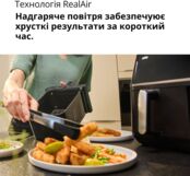 Технологія RealAir циркулює надзвичайно гаряче повітря навколо їжі за допомогою спеціально розробленого високошвидкісного вентилятора. Для здорових, хрустких результатів ззовні та м'яких всередині за лічені хвилини.