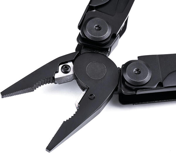 - 16 функцій. Інструмент виконує функції гострогубців, звичайних плоскогубців, ножиць, кусачок для твердого та товстого дроту, серрейторної пили, ножа з прямим заточуванням, хрестової та плоскої викруток, консервного ножа, відкривачки для пляшок, інструмента для зачищення проводів та лінійки. У конструкцію також інтегровано надтвердий склобій з нанокераміки.