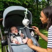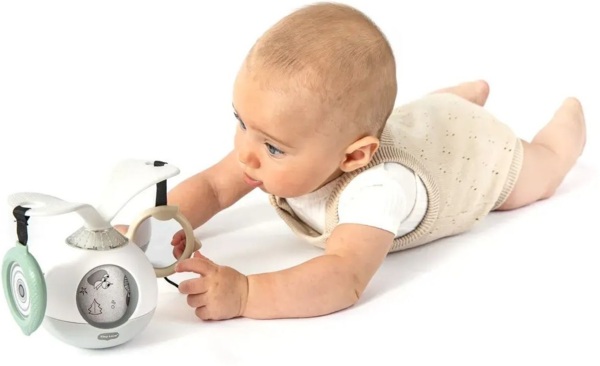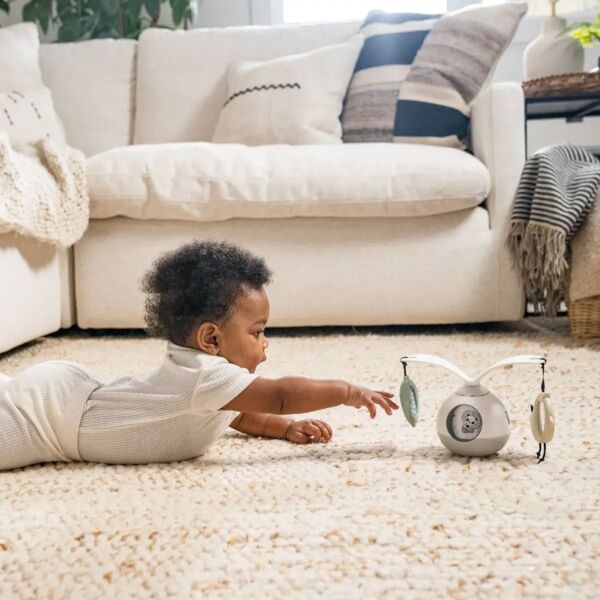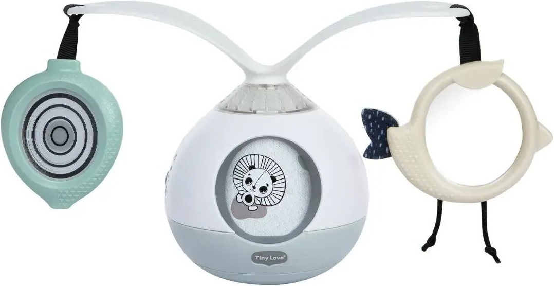 Музична іграшка від Tiny Love створена спеціально для заохочення малюка до гри на животику — однієї з найважливіших поз для немовлят. Завдяки обертанню ігрових елементів на 360°, підсвічуванню та музиці мобіль перетворює обов’язкове тренування м’язів на цікаву гру.