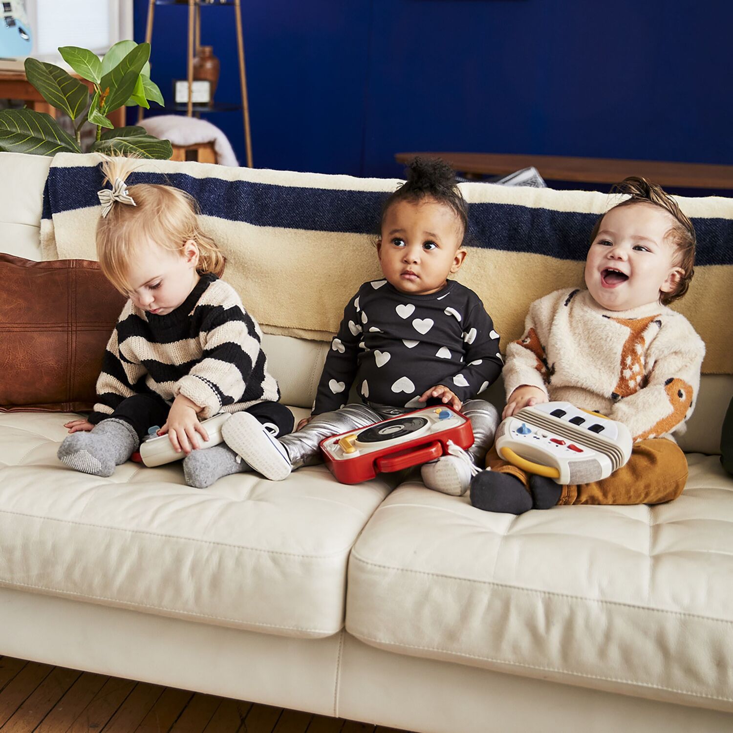 - Перемикач звукових ефектів задля експериментів з музикою, підвищує чутливість малюків до мелодії та дає їм корисний досвід зміни звуку, який вони створюють.