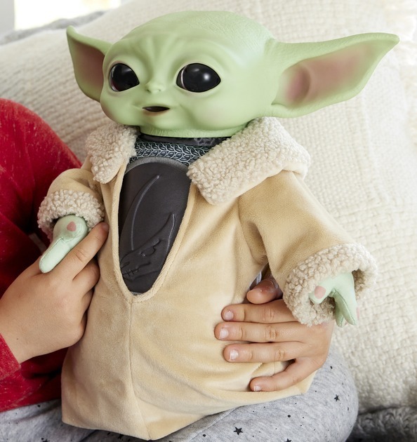 Цю надзвичайно м’яку на дотик 28-сантиметрову іграшку так і хочеться обіймати знову і знову. Маленький вухастий герой ніби тільки-но із серіалу спін-оф "Зоряні війни: Мандалорець" від Disney+. Створений за мотивами третього сезону серіалу, чарівний персонаж із зеленою шкірою, великими вухами та великими очима, якого раніше звали "Дитя", тепер має нове ім'я – Дін Грогу. Іграшка одягнена в мантію, а також кольчугу з ронделем, які, як і нове ім'я, Грогу подарували на честь його офіційного усиновлення у фінальних сценах сезону. Плюшева іграшка досить м'яка для обіймів, але міцна основа дозволяє їй стояти самостійно, а тверда голова має автентично деталізований вираз обличчя - такий милий. Ідеальне доповнення до колекції будь-якого фаната віком від 3 років.